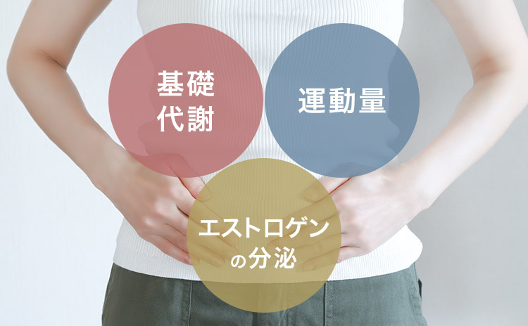 エストロゲンには脂肪の燃焼を助け、内臓脂肪の蓄積を抑える働きがありますが、その効果が弱まることで脂質代謝が低下し、体に脂肪がつきやすくなります。