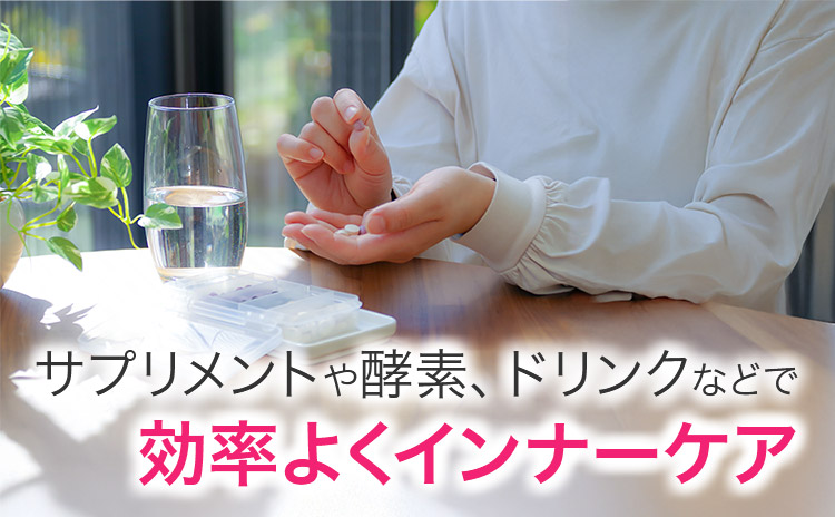 日々バランスのよい食事を摂るのが難しい場合でも、サプリメントや酵素、ドリンクなどを上手に取り入れることで、効率よくインナーケアができます。